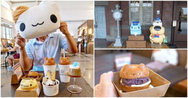 人氣的奶泡貓咖啡新分店,趁這次住台中李方艾美酒店順道一探,比之前綠園道附近的民權店交通更方便,就在台中火車站旁的古蹟老車站臺中驛鐵道文化園區內,風格也結合鐵道元素,咖波和奶泡貓變身站長歡迎大家,光門口就超好拍的(要注意固定於週一公休)。