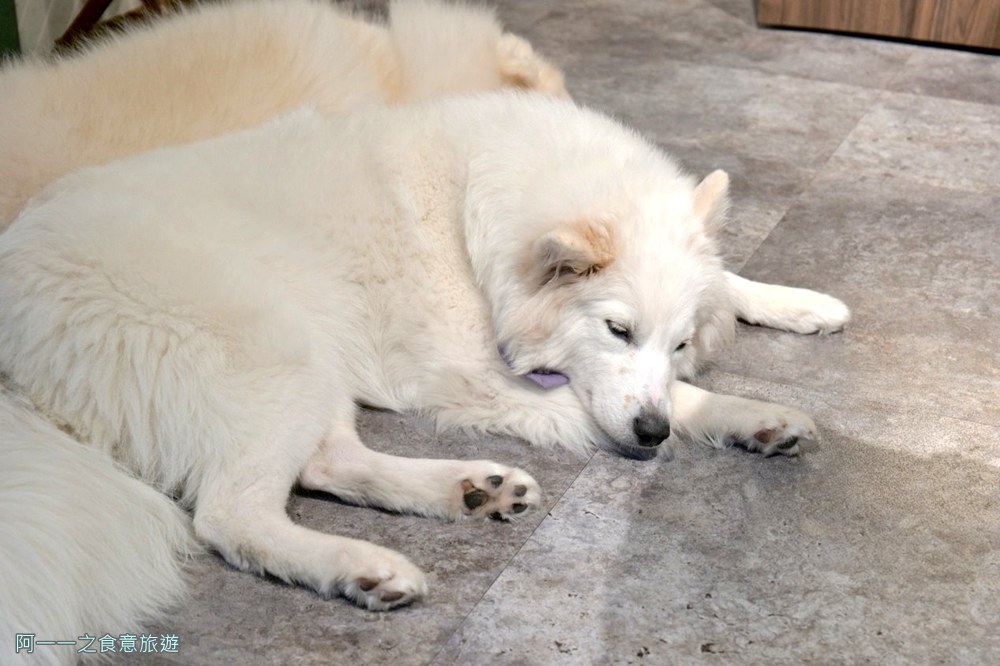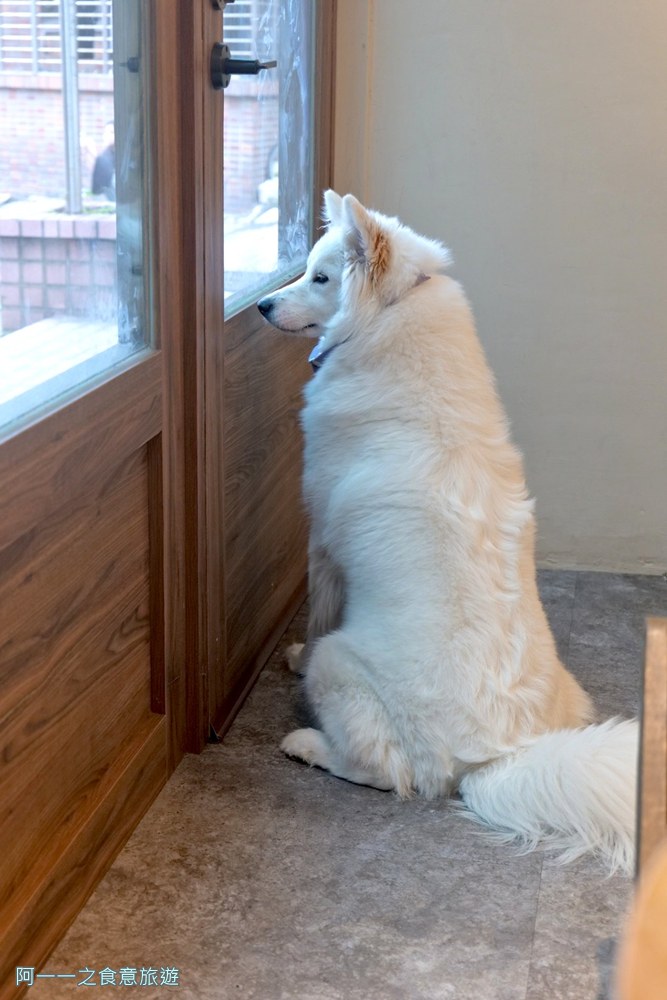 其實一進甜點店你就會看到這裡的特色,就是有好幾隻可愛狗狗,包含白色哈士奇、薩摩耶犬和迷你的泰迪貴賓,當你進來就會熱情歡迎,狗狗都超乖的,可以摸摸(但不可以抱喔!),咖啡廳也整理的很用心,一整個超療癒的,氣氛很舒服。