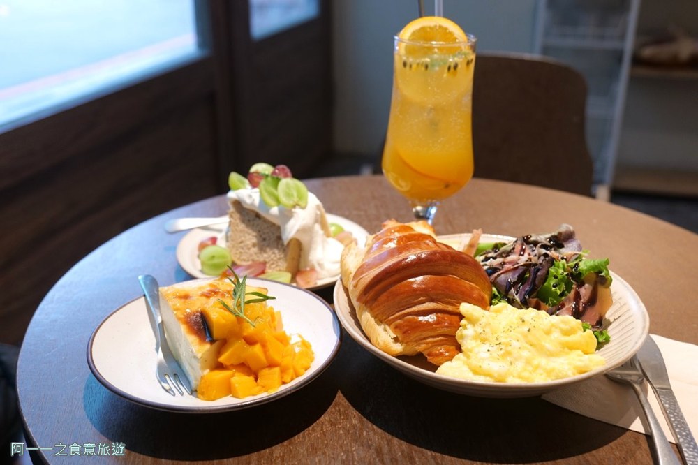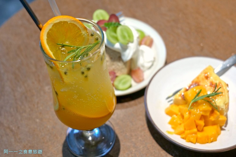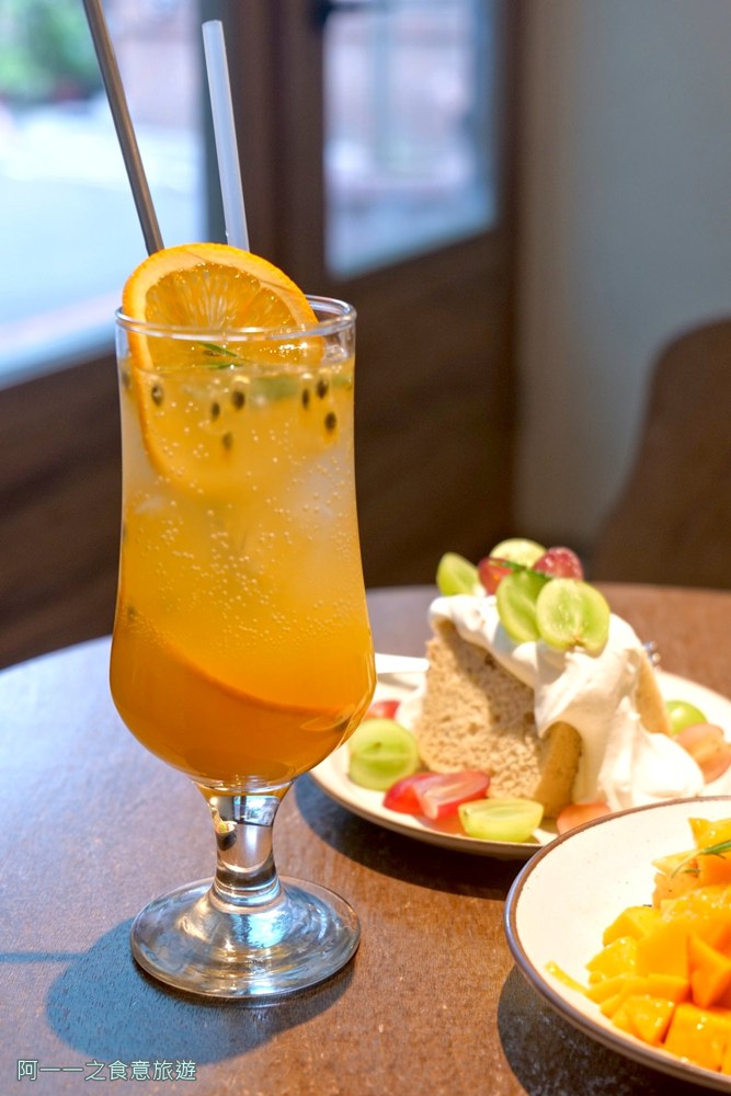 咖啡廳只有帥氣的老闆一人經營,請耐心等候,接下來桌上就冒出幸福好菜,一個人也可以吃得很滿足,飲料我選了很夏天的柳橙蘇打,還滿大杯的,融入柳橙、百香果的酸甜果香,以及蘇打水的維刺激氣泡,啜飲一口暑氣全消。