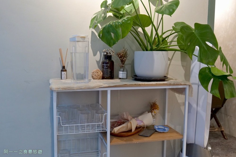 咖啡廳藏在巷子內社區的一樓,門口有設置打卡的純白牆面和舒適的綠意角落,店內坐位主要分為兩個空間,座位數不多,若不想久候,建議還是先訂位。