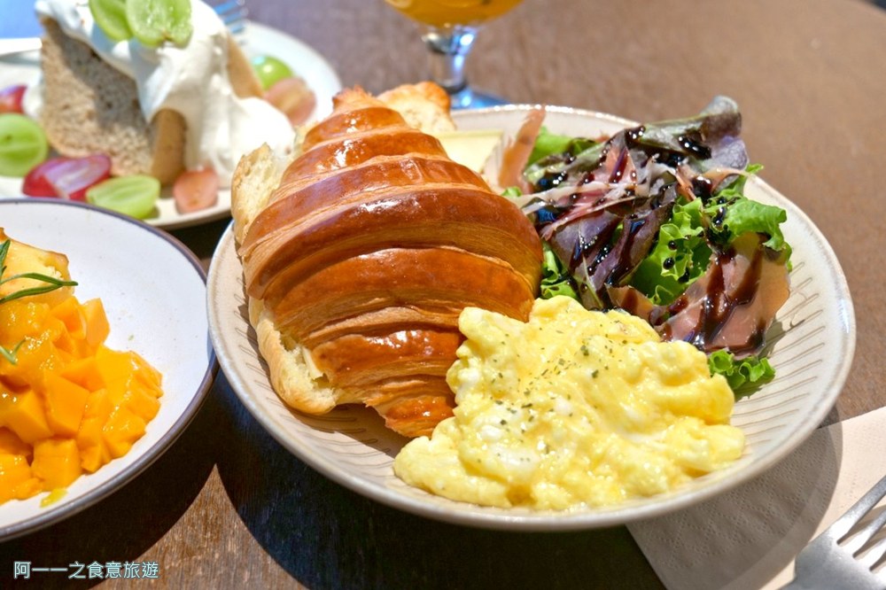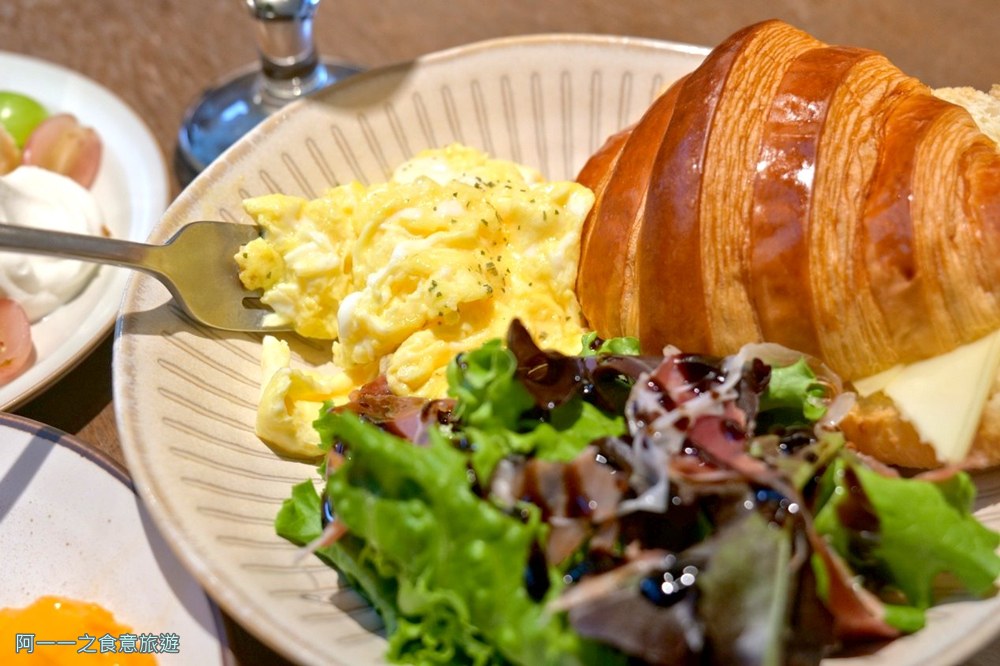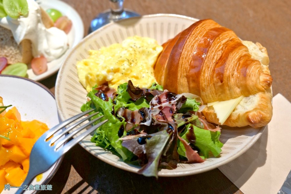 這道咖啡廳唯一的鹹食料理相當有水準,除了有夾著濃郁起司的香酥可頌,附上搭配陳醋醬汁的開胃火腿生菜沙拉,還有嫩嫩的金黃炒蛋,可以分開享用,或是夾在一起大口咬都不錯,營養又好吃!