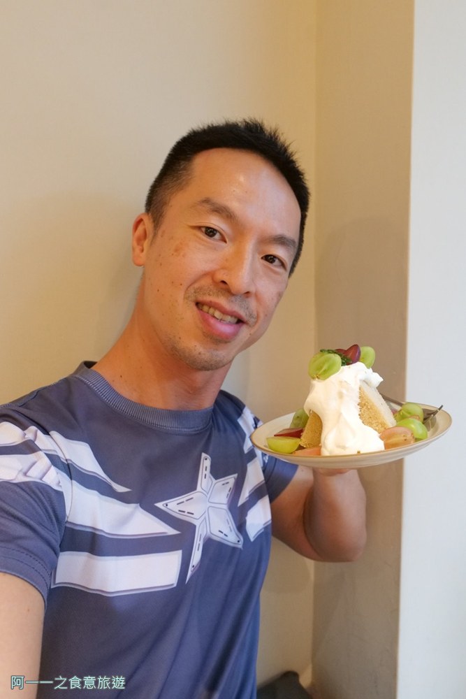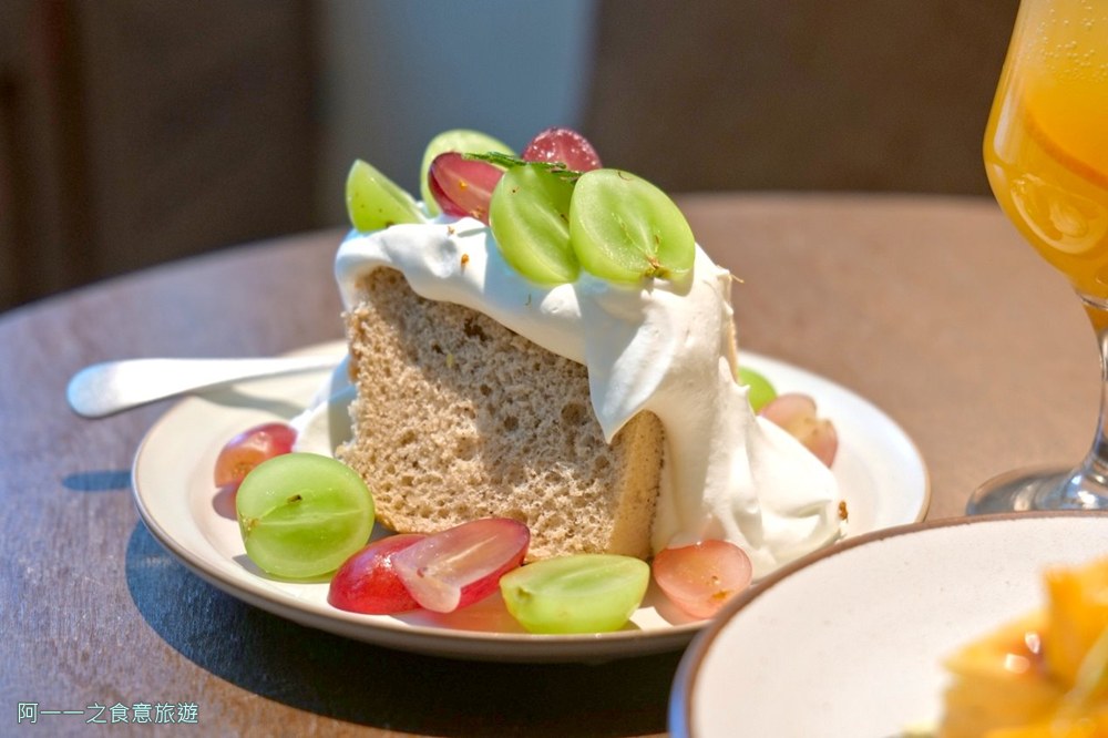 接下來是最期待的幸福甜點,這次點的兩道都是水果口味,先來個葡萄戚風,之前在礁溪的咖啡浴也吃過,璐尼咖啡的戚風蛋糕口感相當濕潤,搭配的鮮奶油也很柔滑細緻,加上料好實在的滿滿新鮮葡萄,每吃一口都讓人不禁揚起幸福笑容。