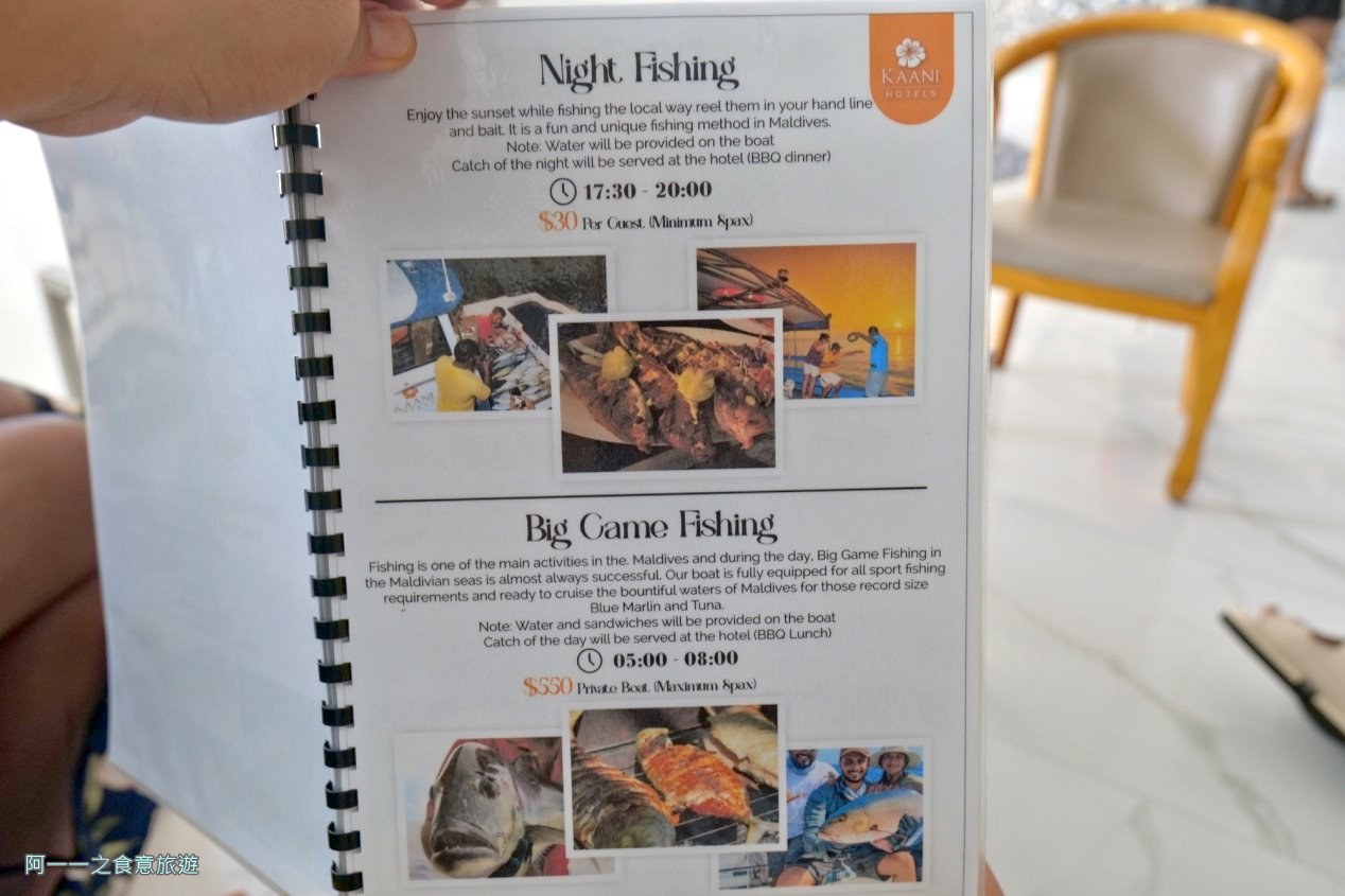 來馬爾地夫想更感受夢幻大海的魅力,一定少不了體驗個浮潛或釣魚,相對於什麼都貴的度假島,來居民島價格會便宜很多,這次來馬爾地夫最早開放的Maafushi 島住Kaani Hotel,就請代訂的屎蛋旅行社報名了它的夜釣和Real Break浮潛半日遊活動。