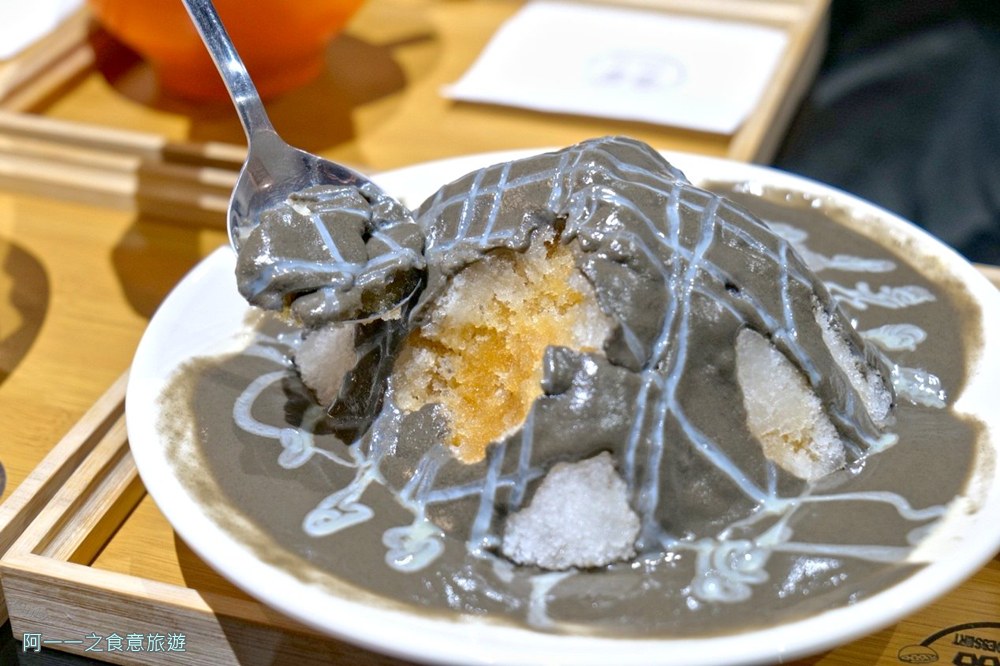 最後壓軸來個冰涼的芝麻糊刨冰,刨冰堆得像座小山,先淋上二砂熬製的糖水,加滿濃郁芝麻糊,再細心畫上條紋的煉乳,看起來就超消暑的!清涼刨冰搭配上店家熬煮的芝麻糊,感受迷人芝麻香慢慢從嘴裡擴散開來,而且不會太甜,吃起來很清爽。天氣熱的時候來一碗,瞬間暑氣全消,同時也吸收了芝麻的健康滋味,一舉兩得阿~
