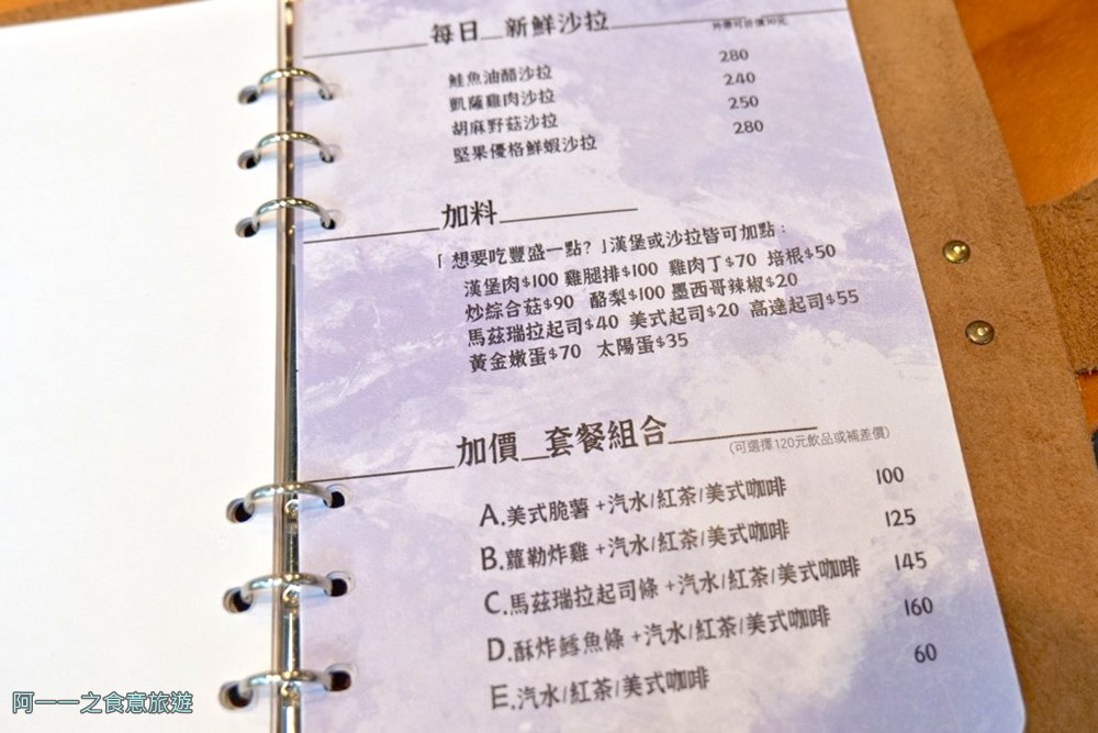 若想吃豐盛些不但能加料,有搭配脆薯、炸雞、起司條和飲料的套餐,還有新鮮沙拉、甜點可以點,飲料中也有厲害的咖啡、鮮奶茶、柚子蘇打,喝得到特別的蜂蜜檸檬咖啡,想來個微醺啤酒也有,等於正餐、下午茶、酒吧一次包~ ※記得喝酒不開車,開車不喝酒
