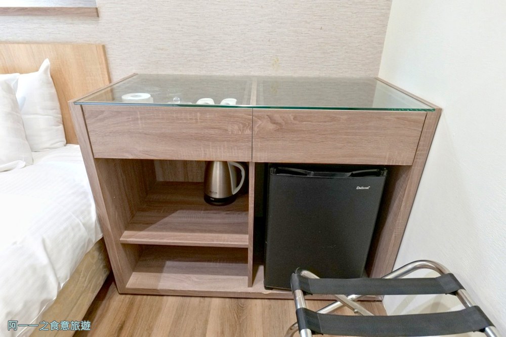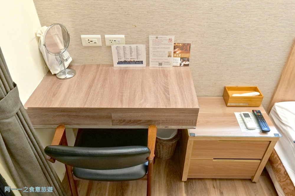 床邊有結合梳妝和商務功能的桌椅,我晚上就在這裡打部落格,房間插座和wifi都很完備,網路速度穩定,想看影片也ok。