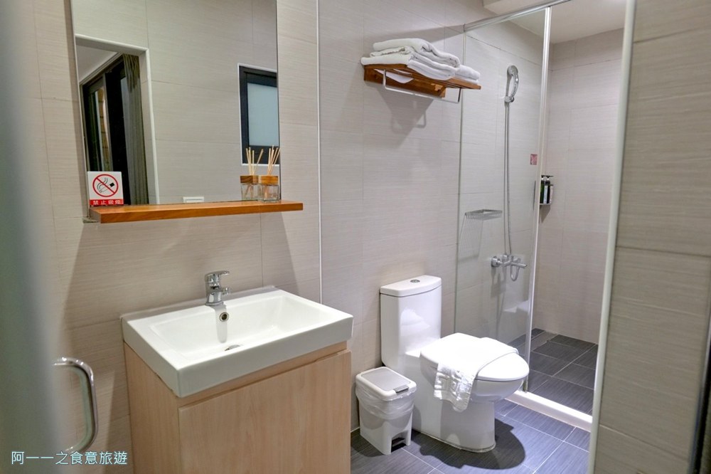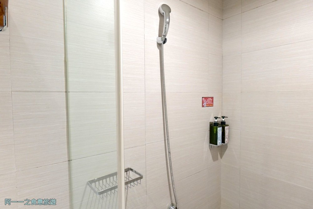房間衛浴空間不大,但該有的都有,乾濕分離的淋浴間,它使用特別的軟水系統,洗起來身體會滑滑的,很舒服。