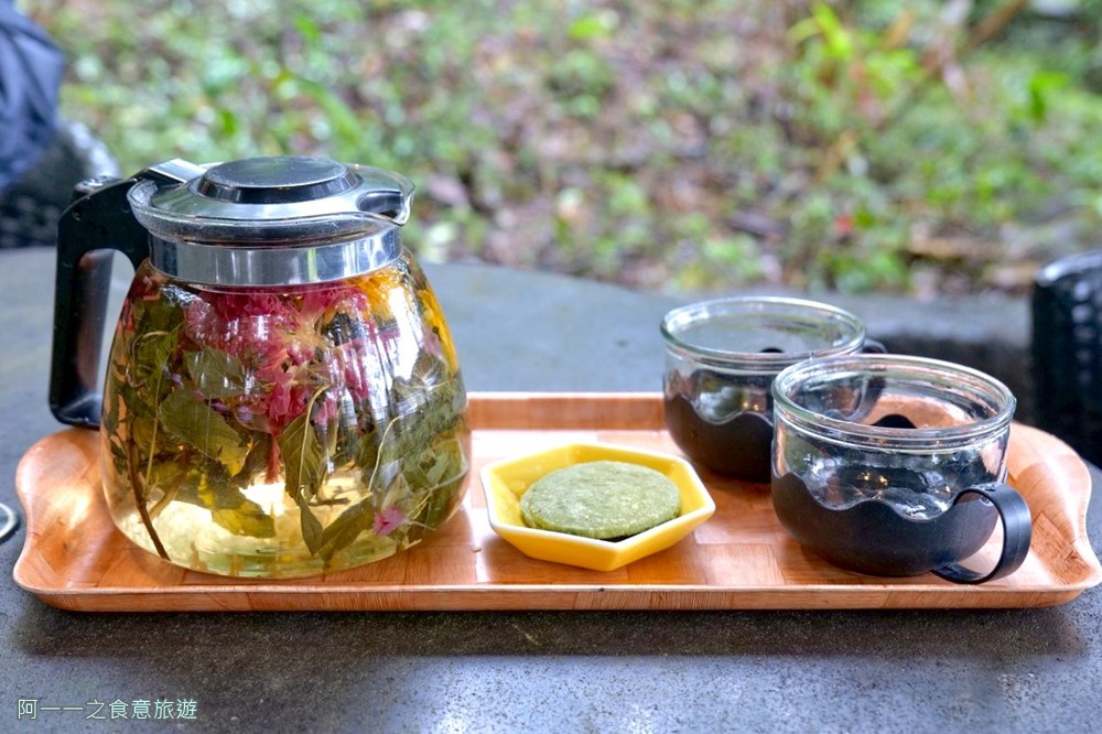 潺癒森林就在陽明山溫泉渡假村菁山遊憩區裡面,除了主打道地江浙菜的菁豔景觀餐廳,還有這間只開五六日的神秘咖啡廳,營業時間從10:00到17:00。沒車平日可搭小15區間車於菁山遊憩區站下車再走進園區(假日則要搭小15於涓絲瀑布站再步行10分鐘),因園區建在山坡上,若有老人家建議開車過來,這次剛好假日來,午餐就來這裡解決。