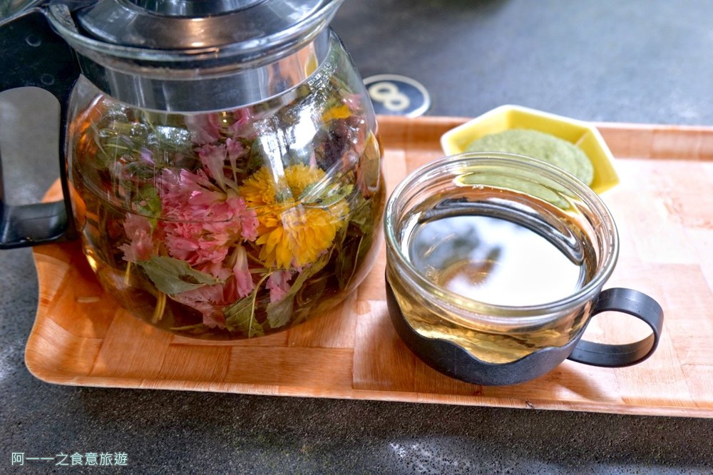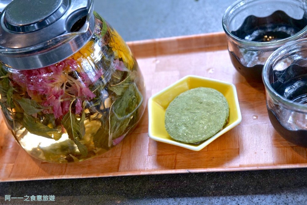 玩披薩DIY之前先來杯溫暖花草茶,滿大壺的非常夠喝,隨茶附上兩片香酥手工餅乾,裡面看得到各種新鮮花草,而且加入了梅子,所以入口除了清新花香之外,還增添一絲舒服的淡淡甘甜。