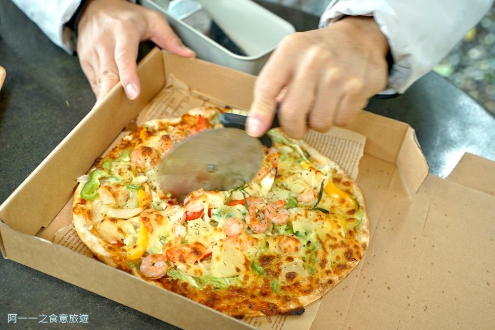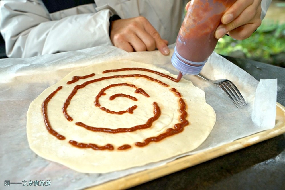 跟之前去的埔里粟坊窯烤披薩和日月潭的白鹿窯木燒麵包一樣,皆使用正港柴燒方式,不用等很久誘人的披薩就完成了,會幫你裝在盒子裡,想在園區找個喜歡的角落野餐或是在這裡內用都沒問題。
